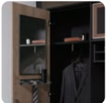Only the strictly selected accessories have been used such as coat hangers, mirror and necktie hanger for elegant and functional design.