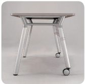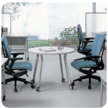The round table, designed for small meetings, is mounted on casters to facilitate mobility.