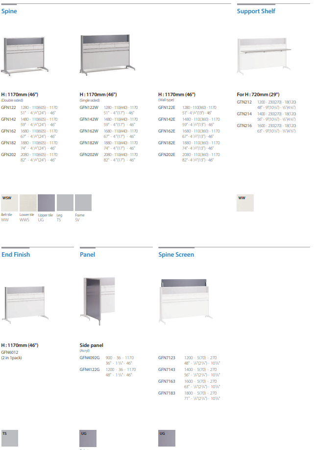 The accessory panel can hold various items and serve as a magnetic board. It can be installed on the spine panel, spine screen or desk screen for enhanced utility