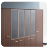 Frosted glass allows you to see stored contents. The combination of gold frame and frosted glass creates a smooth look.