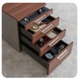 Major work surface of desk is finished in premium, latest technology microfiber leather to provide an elegant look and smooth touch. Sliding-type cable duct allows easy access to cables.