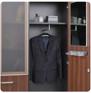 Inside the wardrobe, luxury accessories such as mirrors, hangers, and tie hanger have been applied.
