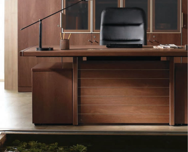 Store frequently used goods in side desk’s hanging drawers. Side cabinet can be added to create more storage space.